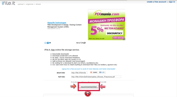 Πατήστε πάνω στο εικονίδιο το οποίο γράφει "Request Download Ticket" (στην εικόνα φαίνεται μέσα σε κόκκινο πλαίσιο ανάμεσα στα βέλη).